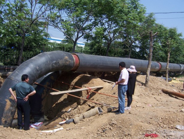 項目概述:2010年泰安市東城區(qū)循環(huán)水節(jié)能改造重點項目,本項目我們采用了預(yù)熱無補償直埋敷設(shè)施工技術(shù)。在供熱管道敷設(shè)方式中,直埋敷設(shè)因?qū)煌ㄓ绊懶?、便于施工及造價低等優(yōu)點被廣泛采用。其中,無補償直埋敷設(shè)是一種技術(shù)先進(jìn)且造價較低的敷設(shè)方式,它與有補償直埋敷設(shè)相比,突出的優(yōu)點在于大大減少了固定支座和補償器小室的數(shù)量,僅在管道變徑、較大管徑與不同敷設(shè)方式(如直埋敷設(shè)與地上敷設(shè))交界處設(shè)置固定支座,特別適用于地下管網(wǎng)復(fù)雜或地下水較高的地區(qū)。 本工程地點在市區(qū)內(nèi),施工難度大、工期緊,我們積極協(xié)調(diào)、加班加點,在當(dāng)年10月中旬圓滿完工,并且一次性試運行成功,確保了采暖期的正常供熱。本工程主管網(wǎng)及分支管網(wǎng)共敷設(shè)管道70多公里,實現(xiàn)供熱面積達(dá)100多萬平方米。