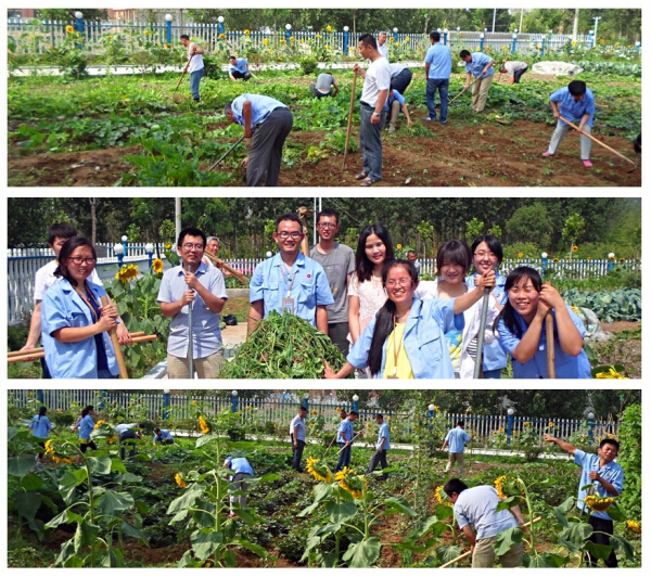 7月2日8:30,集團(tuán)黨支部組織駐地黨員整理院內(nèi)菜園,在黨支部黨員的帶領(lǐng)下,部分公司員工也積極參與其中。炎炎烈日之下,大家辛勤地鋤草、拔草,分工合作、井然有序,勞動場面十分熱烈,大家雖揮汗如雨卻樂在其中。