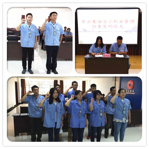 2015年9月8日上午8:30,集團(tuán)駐地舉辦了員工職業(yè)導(dǎo)師培養(yǎng)簽約儀式和干部員工宣誓儀式。工程公司3名新員工與導(dǎo)師正式簽約。集團(tuán)駐地9名干部員工面對(duì)司旗,莊嚴(yán)宣誓:忠誠(chéng)集團(tuán)事業(yè),秉承集團(tuán)宗旨,弘揚(yáng)集團(tuán)精神;團(tuán)結(jié)協(xié)作、努力進(jìn)??;全心全意,爭(zhēng)先創(chuàng)優(yōu);為興我中正,而竭盡全力。